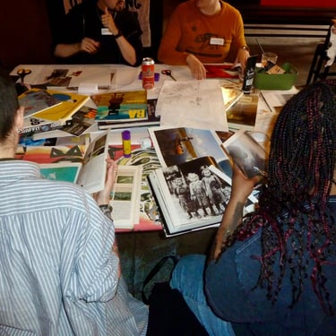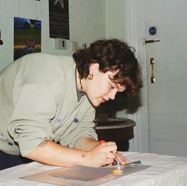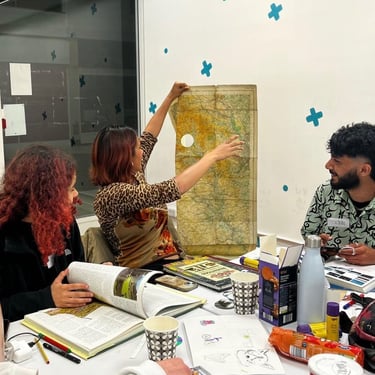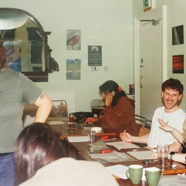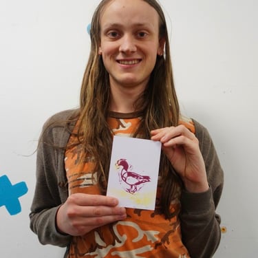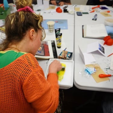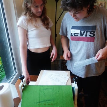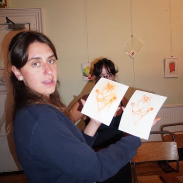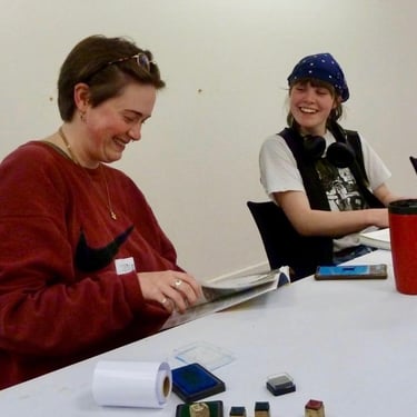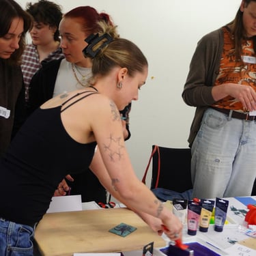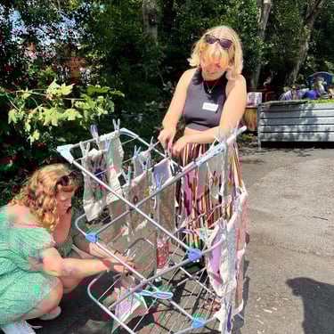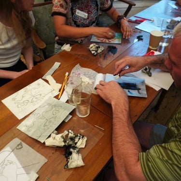 I've had the honour of leading social prescribing sessions in the heart of a local community garden, allowing us to draw creative inspiration from our natural environment. I structure these sessions as creative socials; fostering collaboration and connection as participants work side-by-side to achieve creative outcomes, like working together to build paper-making screens. So far, participants have enjoyed printing with plants, recycled paper making, creating their own notebooks from scratch and building sculptures from wild clay!